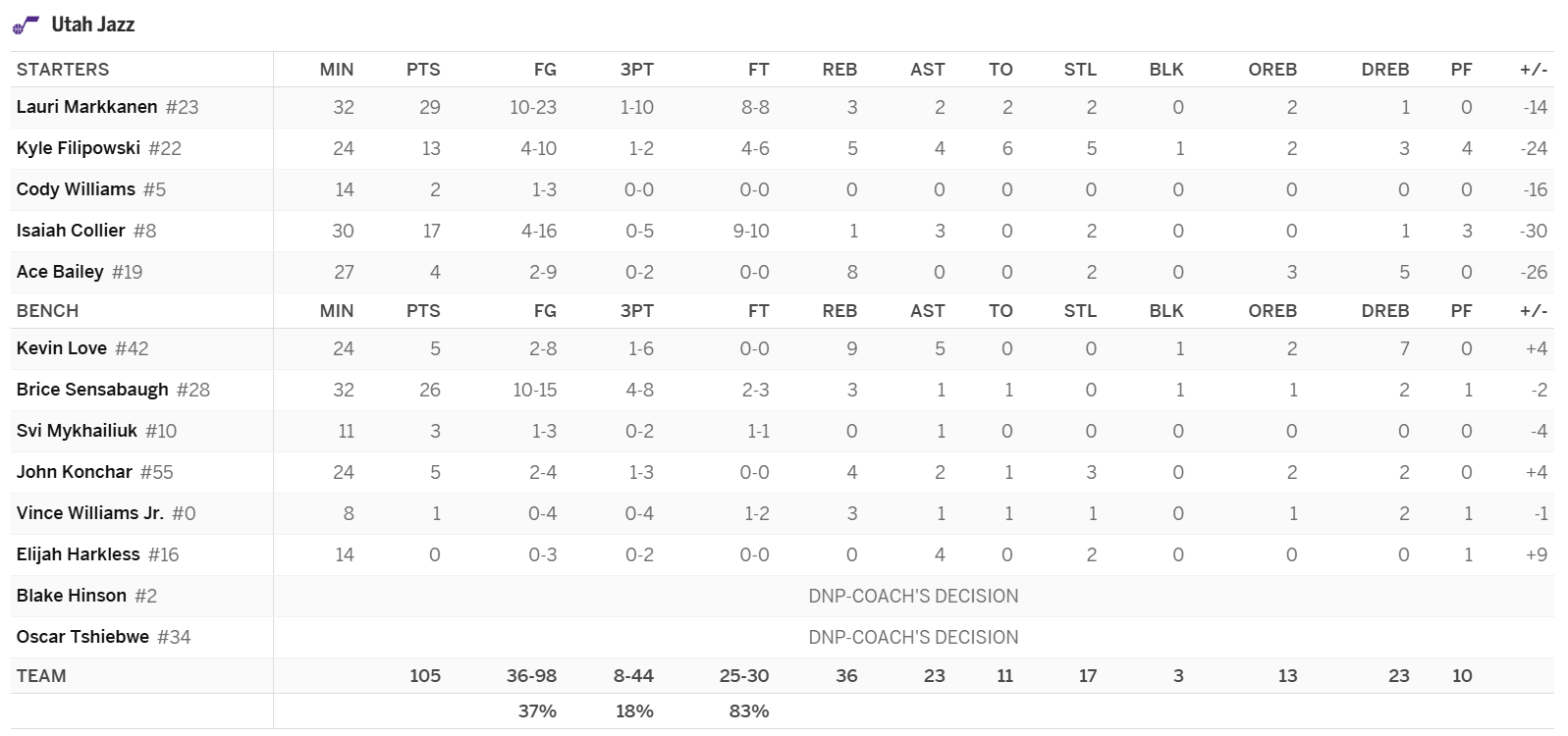 Kyle Filipowski (Pick Up): The minutes weren’t there tonight, but they should be down the stretch with Nurkic now done for the year. Filipowski is now the clear top dog at the five and needs to be added in all leagues. In a featured role, he comes with a fairly high ceiling, especially in points leagues where popcorn numbers matter more. Over the last month, in just 21.8 MPG, Filipowski has been a top-90 nine-category asset. In points leagues, he’s been in a similar range. Over that span, the second-year big has averaged 12.1 PPG on 58.8 FG%, 0.9 3PG, 8.2 RPG, 2.4 APG, and 1.8 SPG. The efficiency and steals won’t hold, but the increase in minutes will more than offset the inevitable regression in both areas.