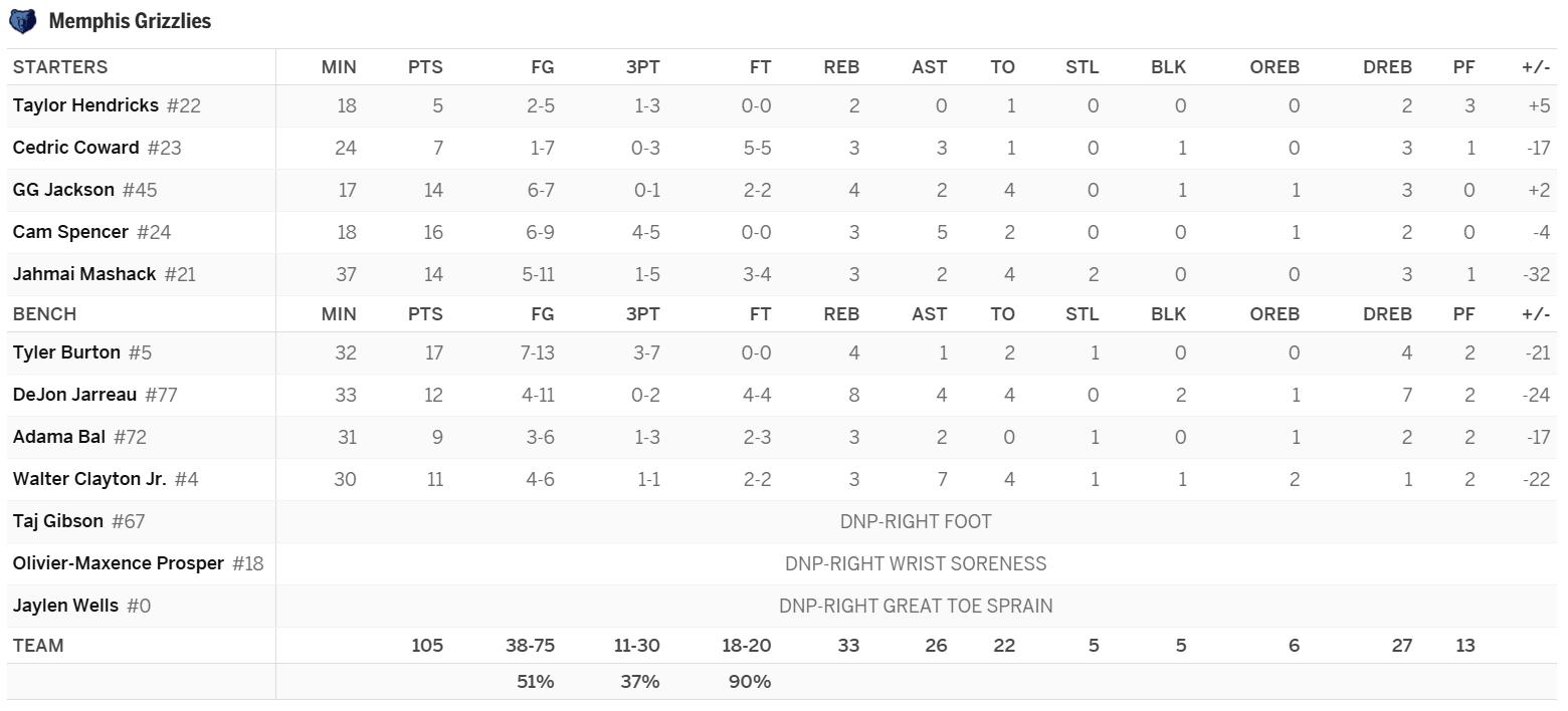 G.G. Jackson: I wouldn’t bother with Jackson at this point. The minutes are trending in the wrong direction fairly rapidly. The forward played just 17 minutes last night, and on Saturday against the Bulls, he was on the court for just 21 minutes. Jackson is also not producing a useful line. He’s just a points specialist who gives us very little outside of his best category. Over his last seven, in 25.4 MPG, Jackson has not been a top-200 player despite averaging 17.0 PPG because he’s done absolutely nothing elsewhere.
