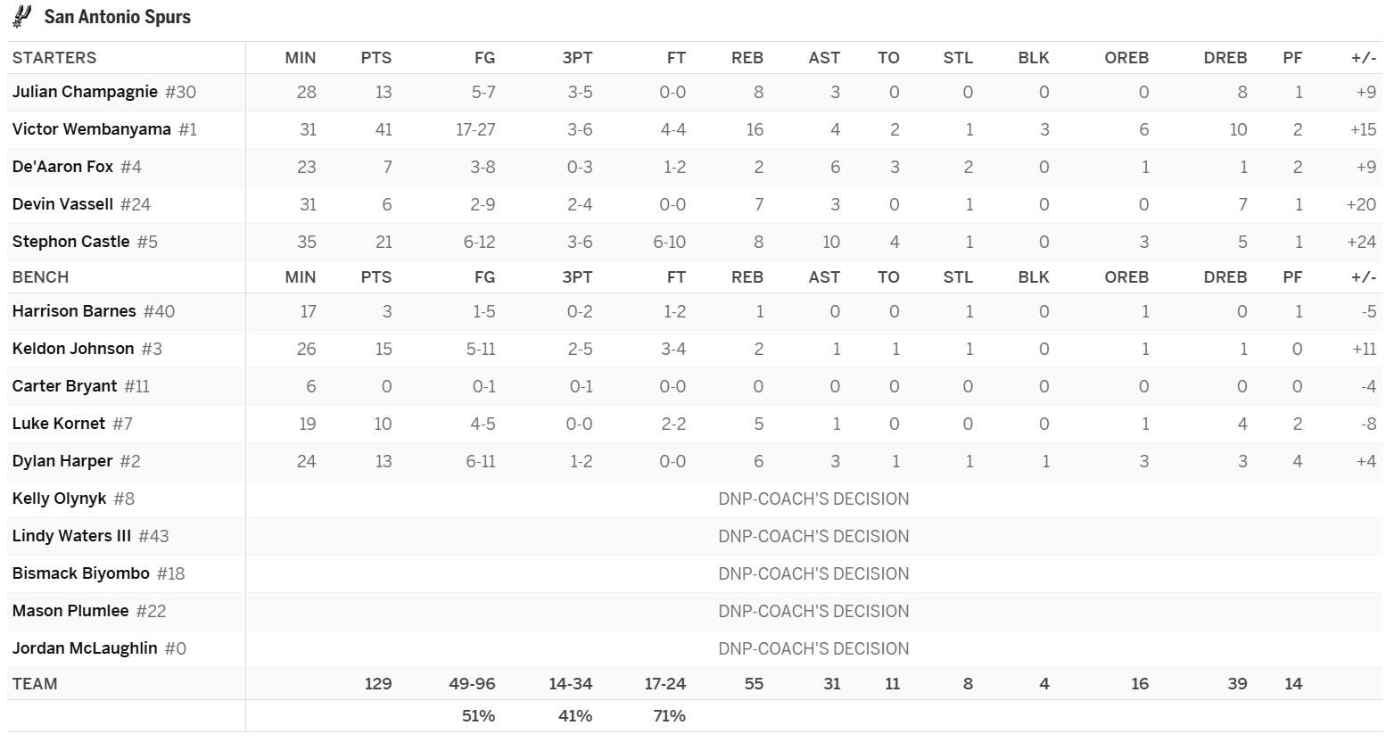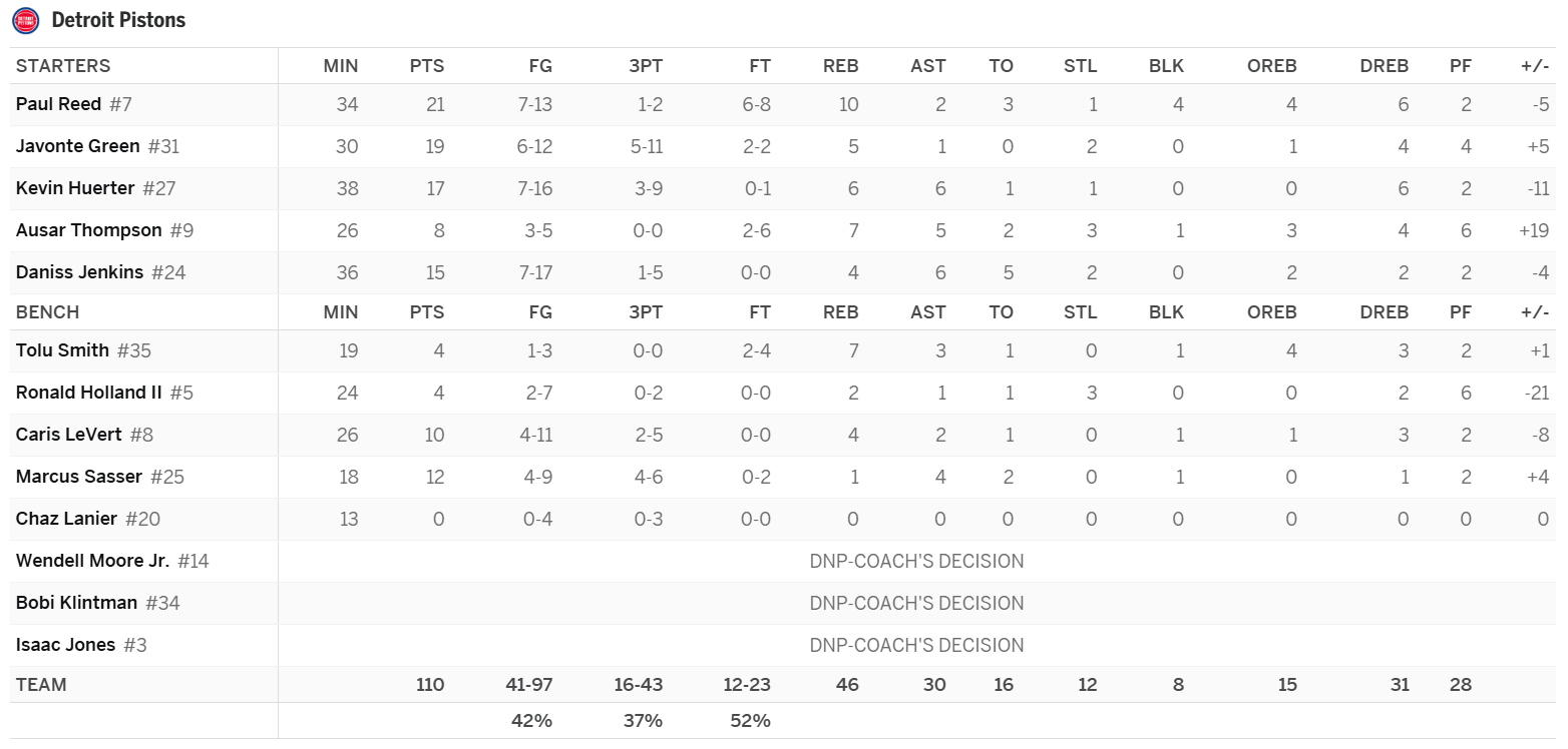 Paul Reed: This was a very predictable big night for Reed. The big man is always a great bet for an early-round line on nights when he’s playing big minutes. If Duren sits again, and he likely will next week once the Pistons clinch the top seed in the East, Reed will be an automatic stream. As a starter this year, Reed is averaging 14.7 PPG on 59.1 FG%, 0.6 3PG, 8.0 RPG, 3.3 APG, 2.0 SPG, and 2.0 BPG in 28.4 MPG. On nights when Duren is active, Reed will play minutes in the mid-teens. When both Duren and Stewart are active, Reed will play just a handful of minutes and will be a DNP-CD candidate.