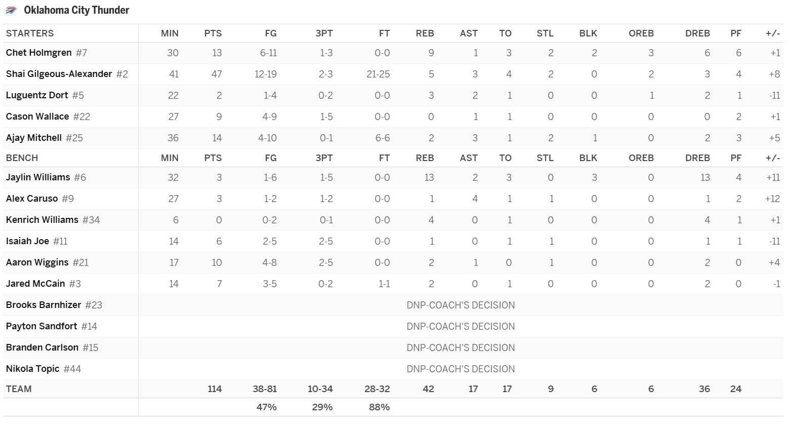 Ajay Mitchell: Mitchell got some extra run due to J Dub and Hartenstein being out and the game going into overtime. Most nights, Mitchell’s minutes end up around 26, where he is a 12-team asset, but not a high-upside one. The Thunder’s schedule makes Mitchell a drop in leagues that end this week. The team has just two games left this week and only one comes before Sunday. That means we will see Mitchell just once over the next five days.