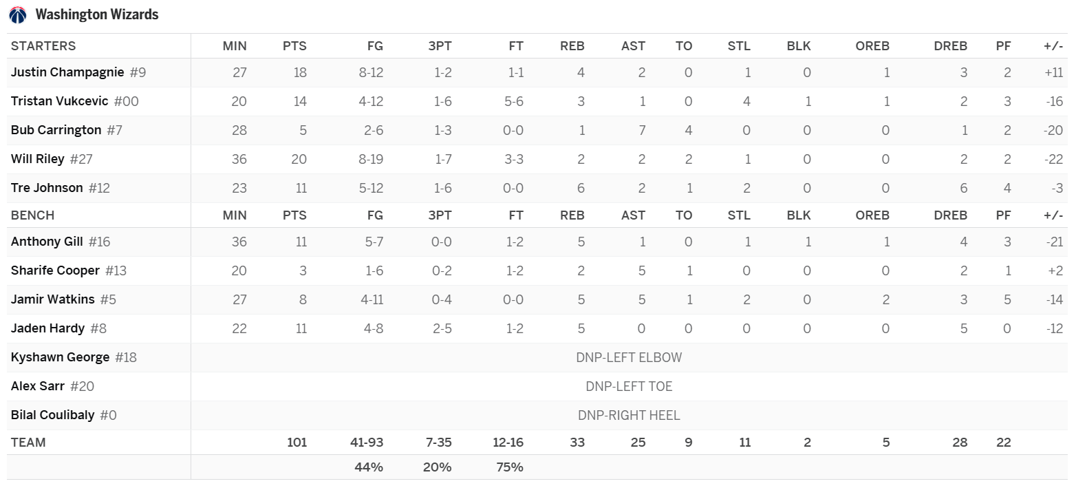 Anthony Gill: That’s a lot of minutes for Gill. Those in 16+ team leagues should keep an eye on Gill. If he starts playing 30+ MPG consistently, he would end up as a solid source of both rebounds and steals. He’s currently producing 6.3 RP36 and 1.3 SP36. Deep league managers should hold off on adding for now due to the Wizards’ schedule. Washington plays on Wednesday and then are off until Saturday when they begin a back-to-back set in Miami.