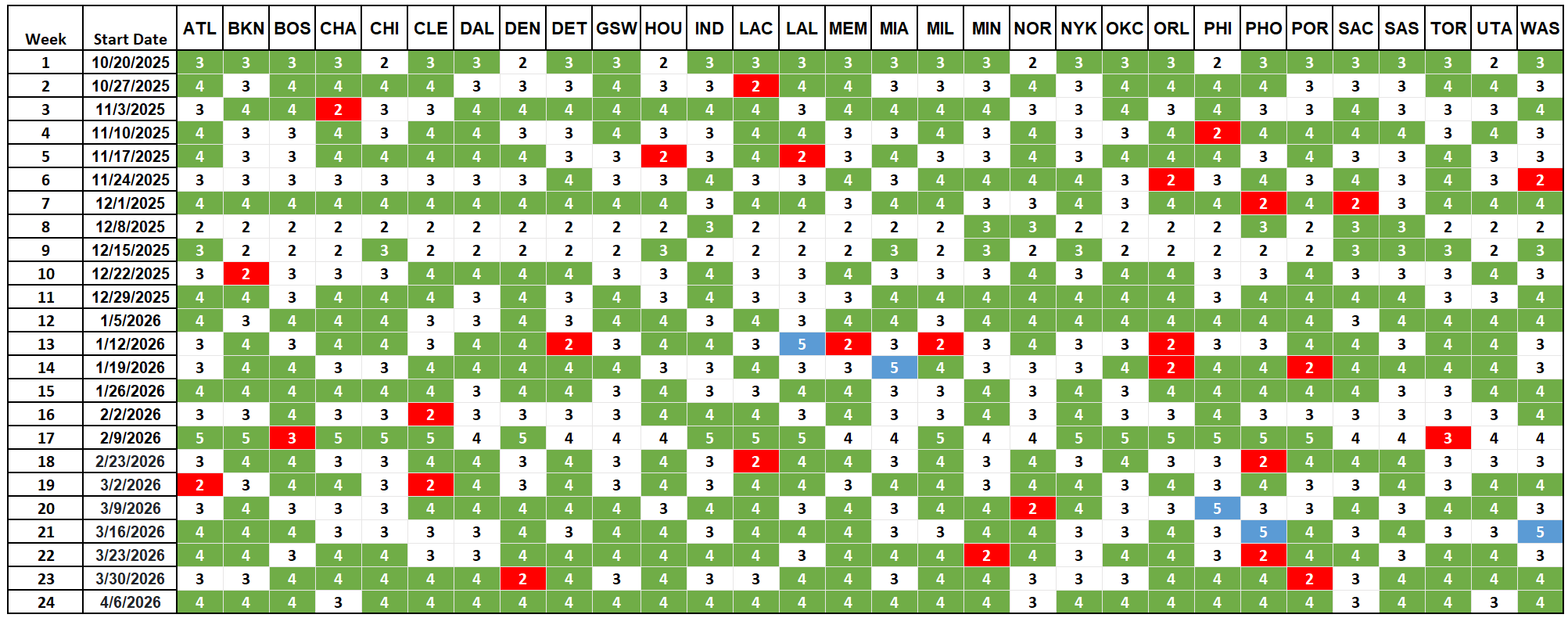 25/26 Schedule Grid
