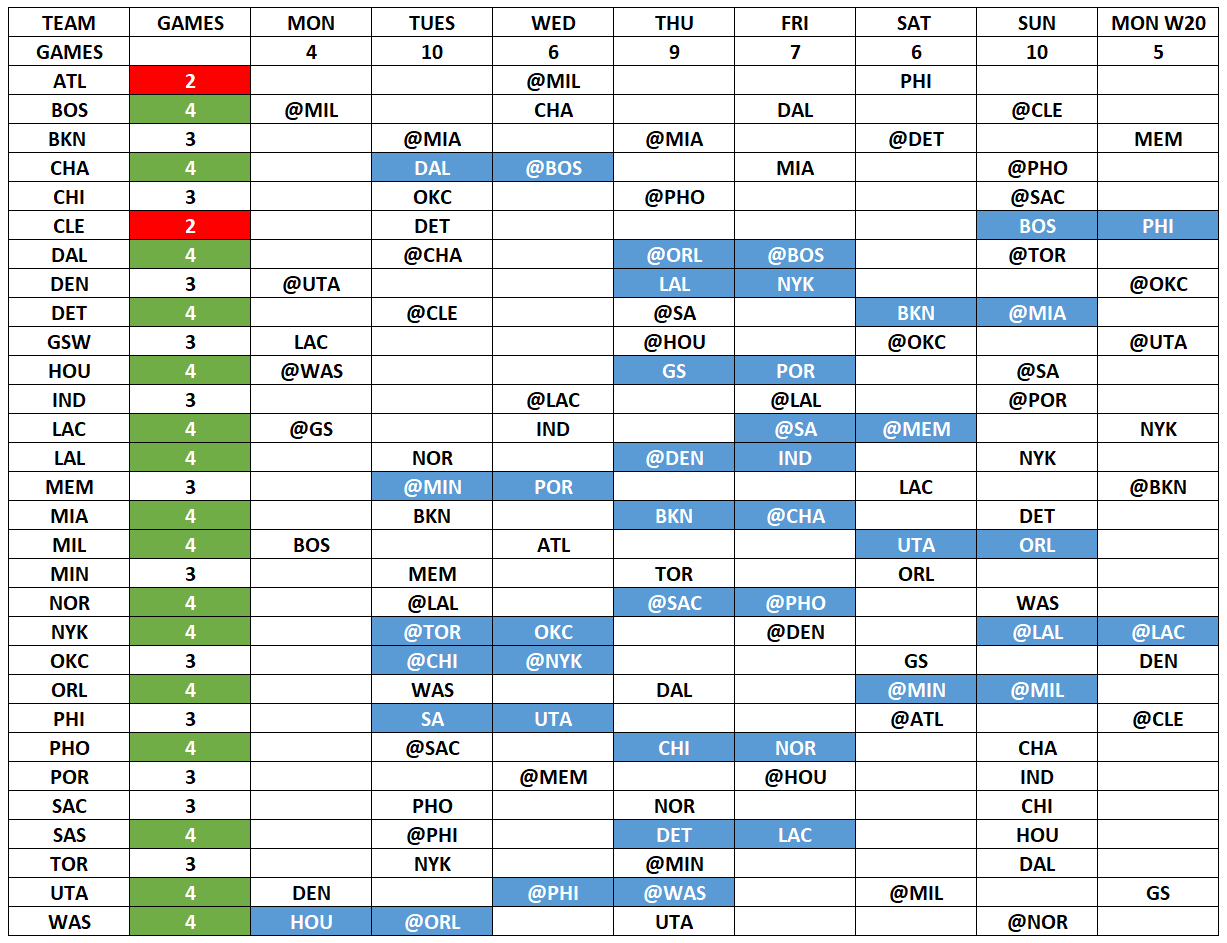 25/26 Week 19 Schedule