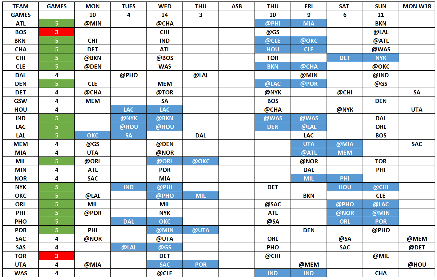 Current Week Schedule